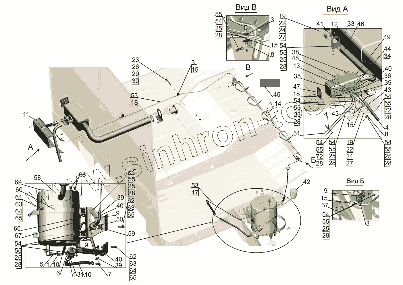 Каталог запасных частей к технике: МАЗ-6501B9. Установка независимого воздушного отопителя 6501-8100002-011