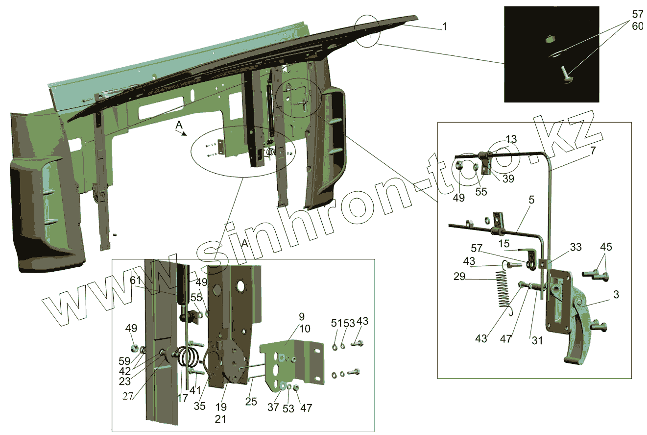 Каталог запасных частей к технике: МАЗ-6501B9. Установка облицовки передка 6431-8400018-000