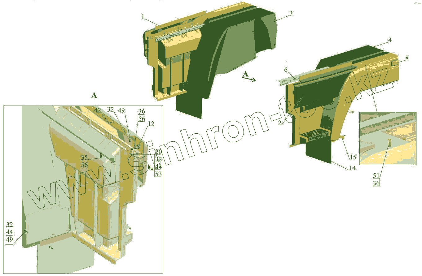 Каталог запасных частей к технике: МАЗ-6501B9. Установка оперения 6501E9-8400020-000
