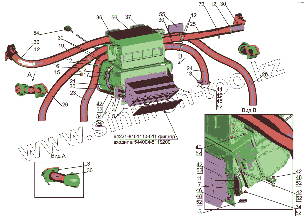Каталог запасных частей к технике: МАЗ-6501B9. Установка отопителя 631019-8100001