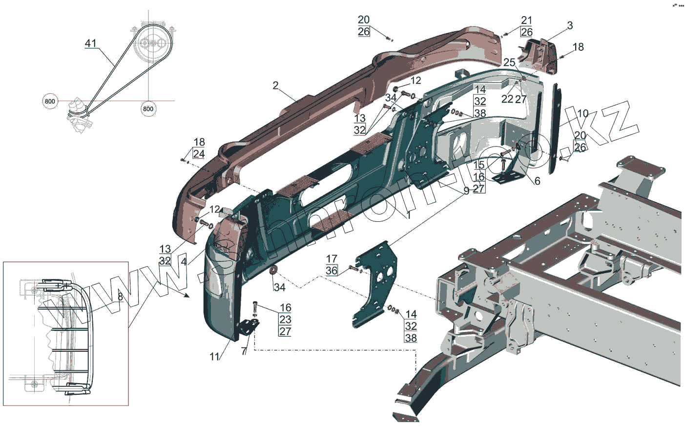 Каталог запасных частей к технике: МАЗ-6501B9. Установка переднего бампера 6516V8-2800003-000