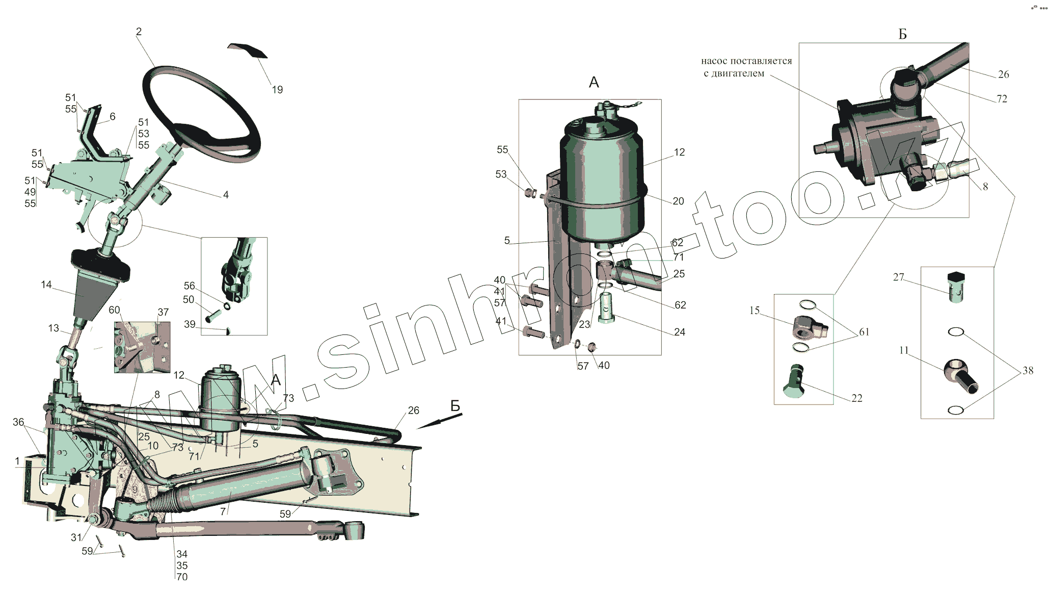 Каталог запасных частей к технике: МАЗ-6501B9. Установка рулевого управления 6501B9-3400001-000