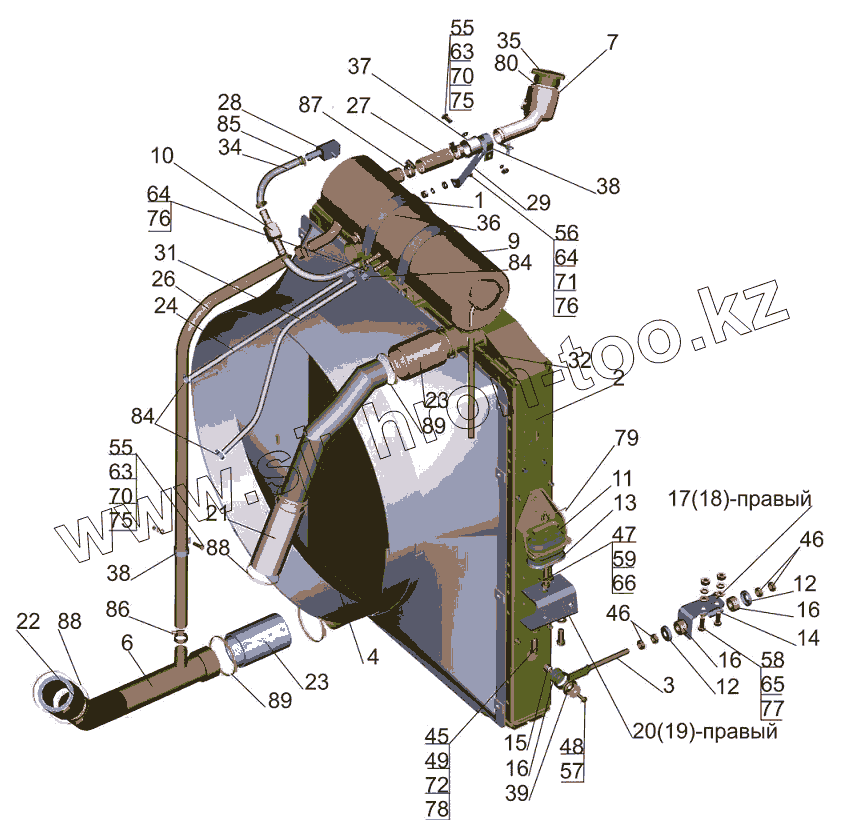 Каталог запасных частей к технике: МАЗ-6501B9. Установка системы охлаждения 5440B9-1300005