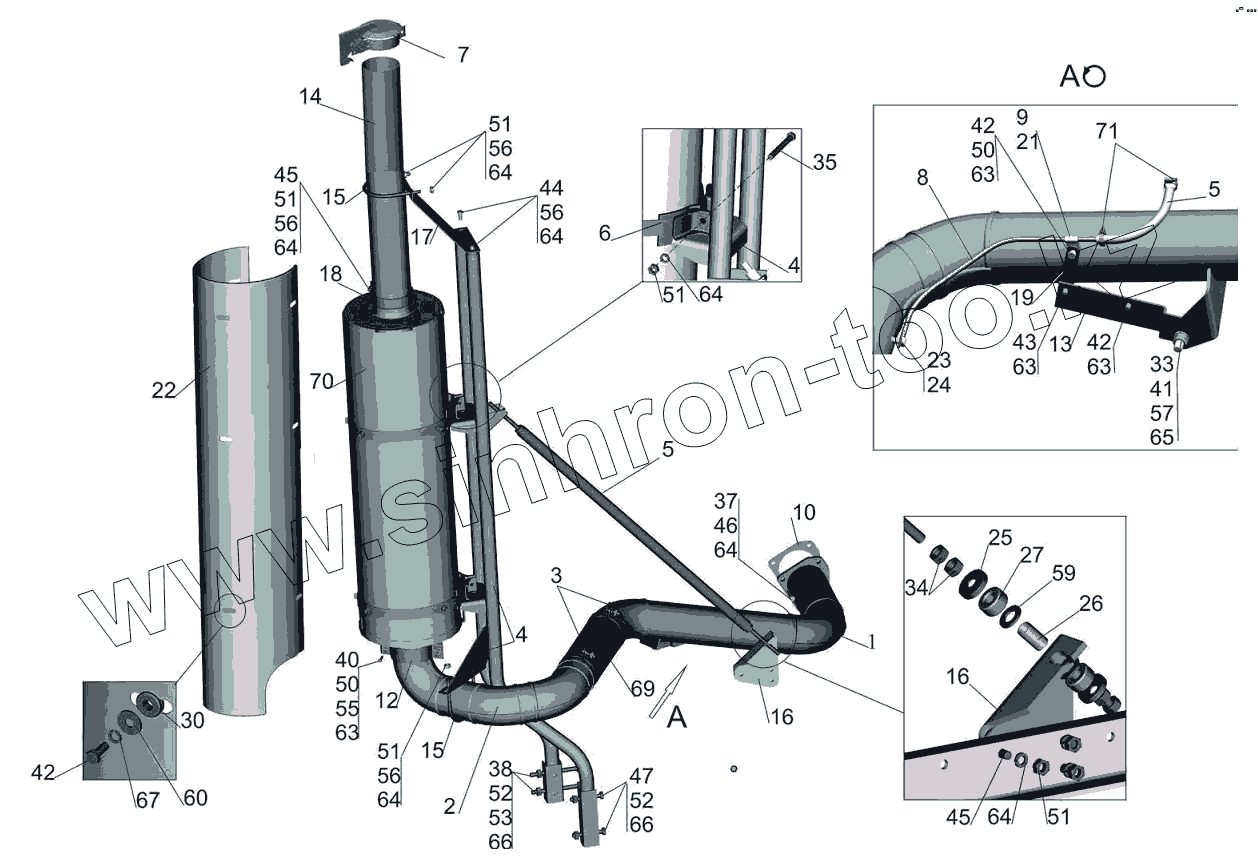 Каталог запасных частей к технике: МАЗ-6501B9. Установка системы выпуска газов 6501B9-1200001-000