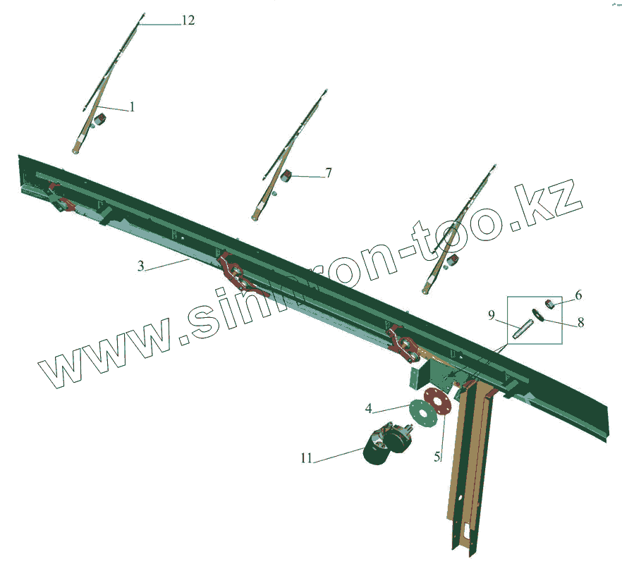 Каталог запасных частей к технике: МАЗ-6501B9. Установка стеклоочистителя 6430-3700041-001