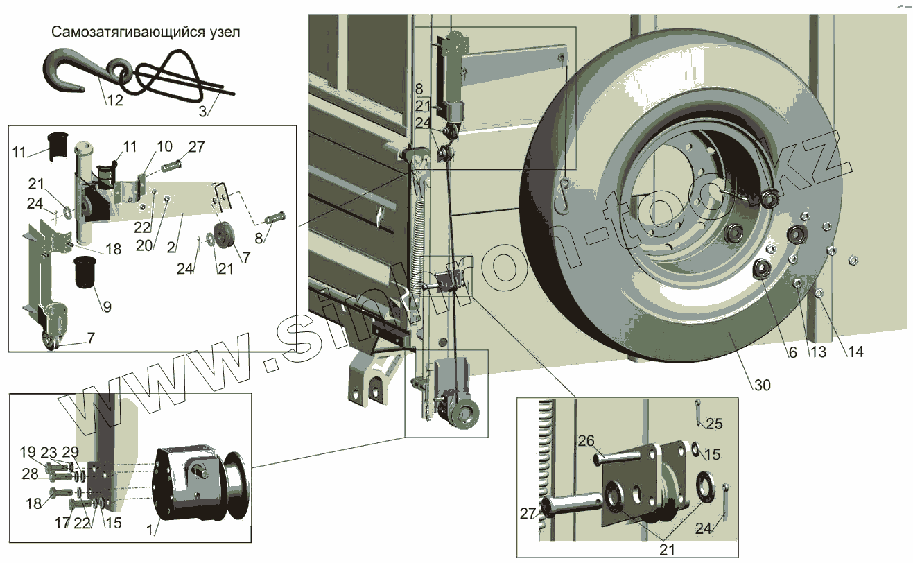 Каталог запасных частей к технике: МАЗ-6501B9. Установка запасного колеса