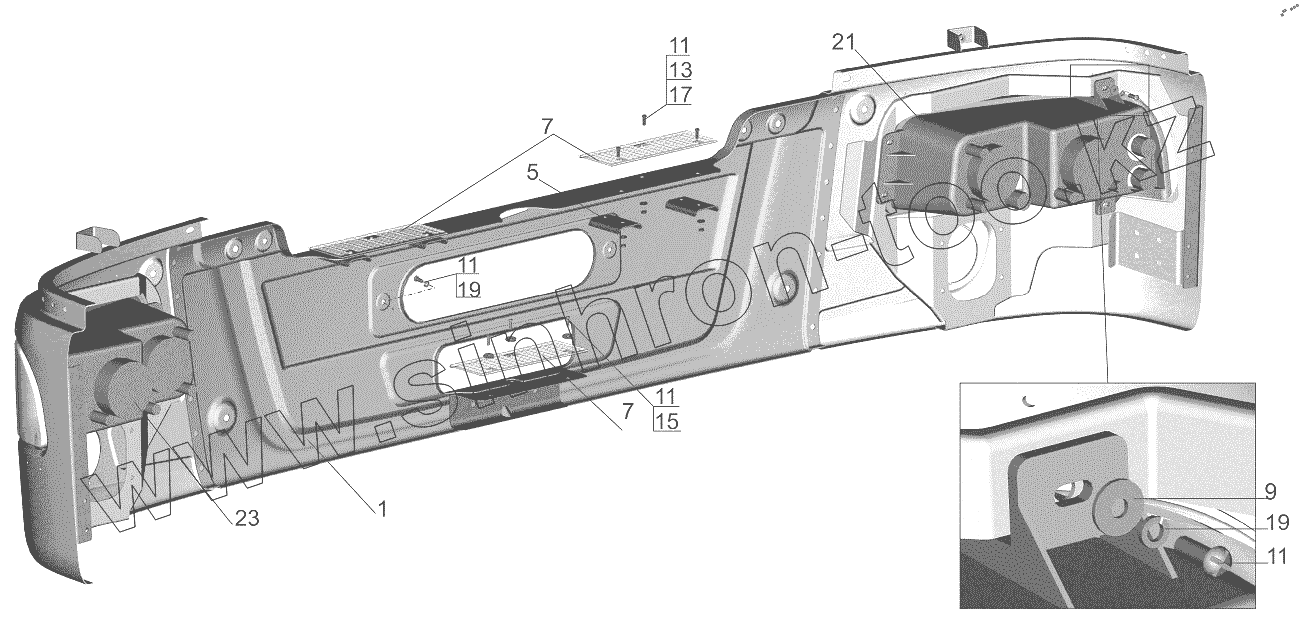 Каталог запасных частей к технике: МАЗ-6501B9. Бампер передний 650119-2803010-000
