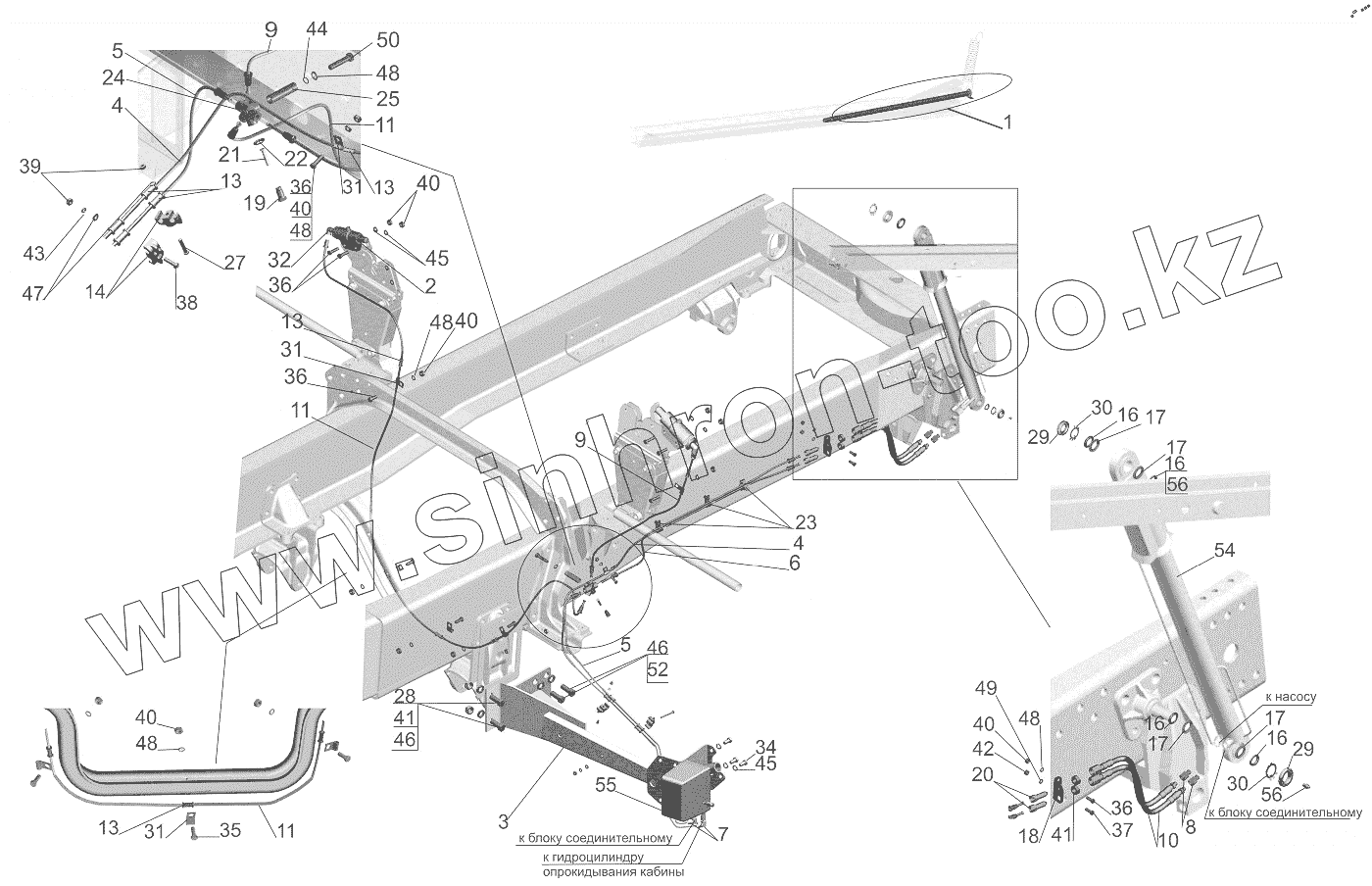 Каталог запасных частей к технике: МАЗ-6501B9. Механизм подъема кабины 6501B9-5000040-011