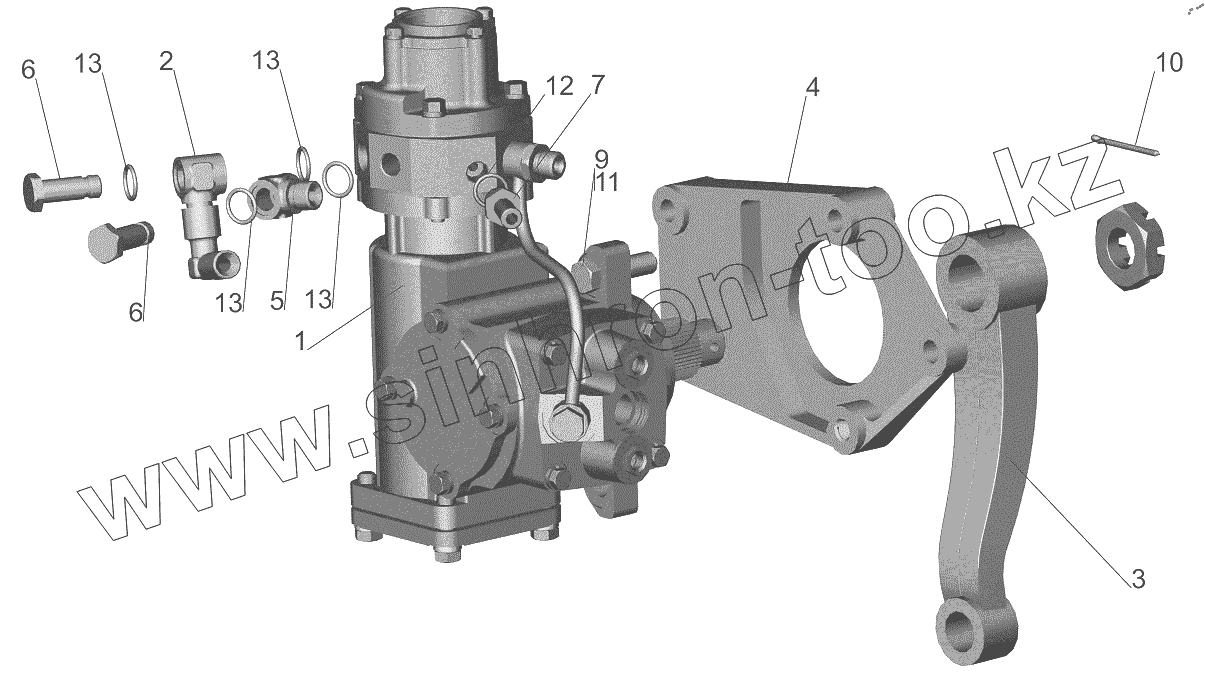 Каталог запасных частей к технике: МАЗ-6501B9. Механизм рулевой с кронштейном 6418-3400006