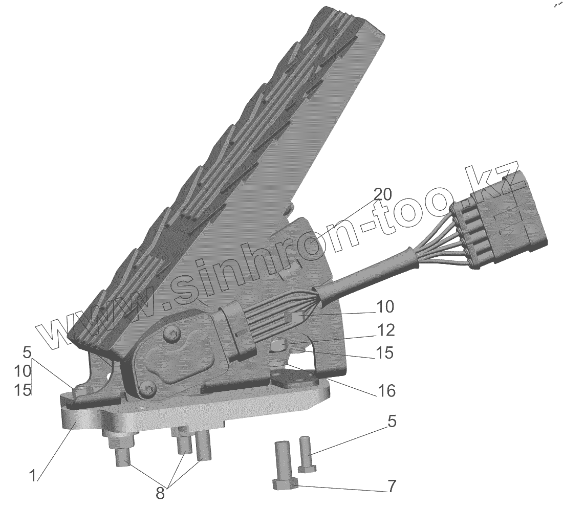 Каталог запасных частей к технике: МАЗ-6501B9. Педаль с переходником 437143-1108005