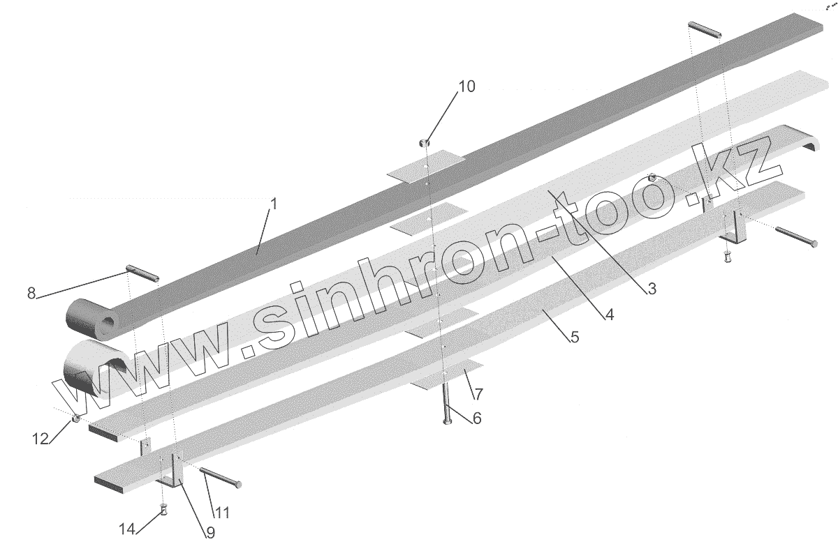 Каталог запасных частей к технике: МАЗ-6501B9. Рессора передняя 6312-2902012-000