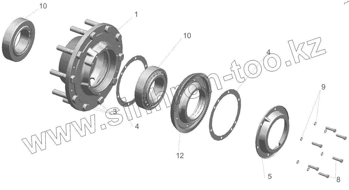 Каталог запасных частей к технике: МАЗ-6501B9. Ступица с крышкой