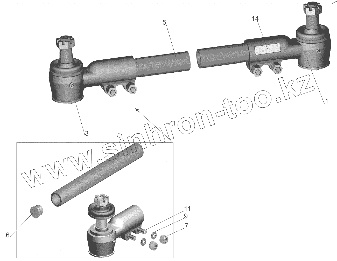 Каталог запасных частей к технике: МАЗ-6501B9. Тяга поперечная 64221-3003052
