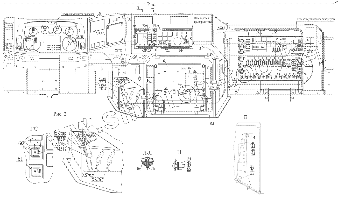 Каталог запасных частей к технике: МАЗ-6501B9. Установка электрооборудования АБС по кабине