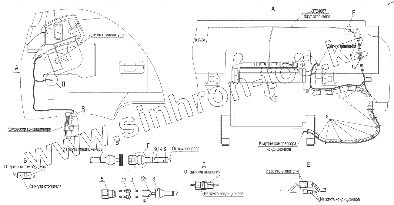 Каталог запасных частей к технике: МАЗ-6501B9. Установка электрооборудования кондиционера 5440A9-3700092