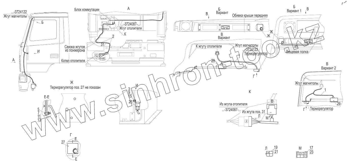 Каталог запасных частей к технике: МАЗ-6501B9. Установка электрооборудования подогревателя 6501-3700085