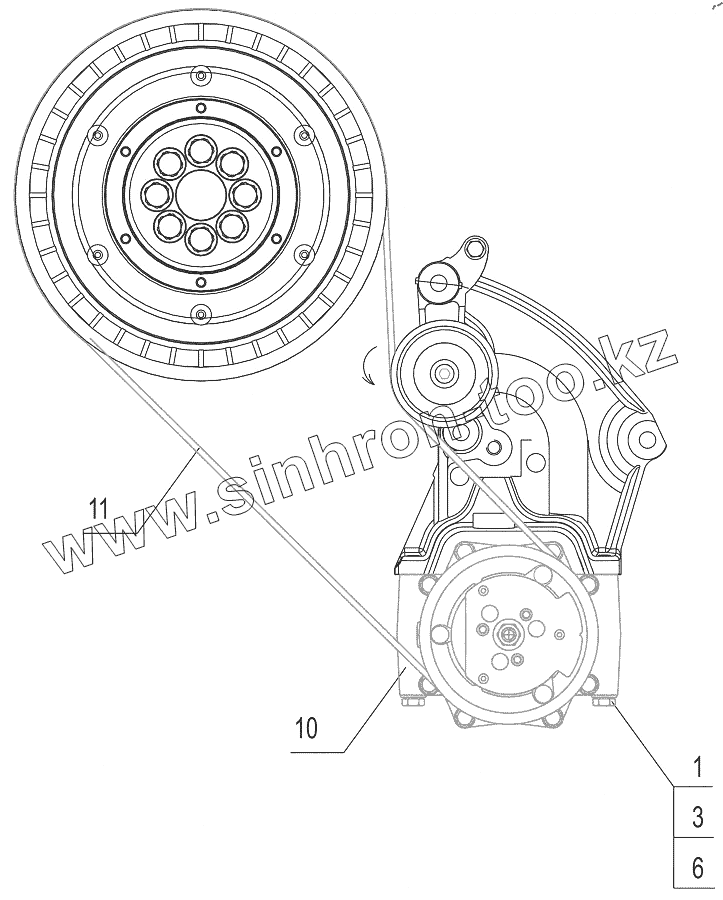 Каталог запасных частей к технике: МАЗ-6501B9. Установка компрессора 5440А9-8100010