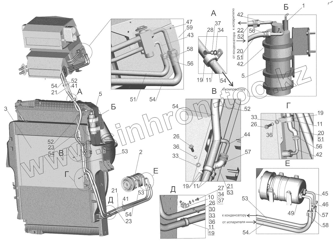 Каталог запасных частей к технике: МАЗ-6501B9. Установка кондиционера 5440B9-8100004