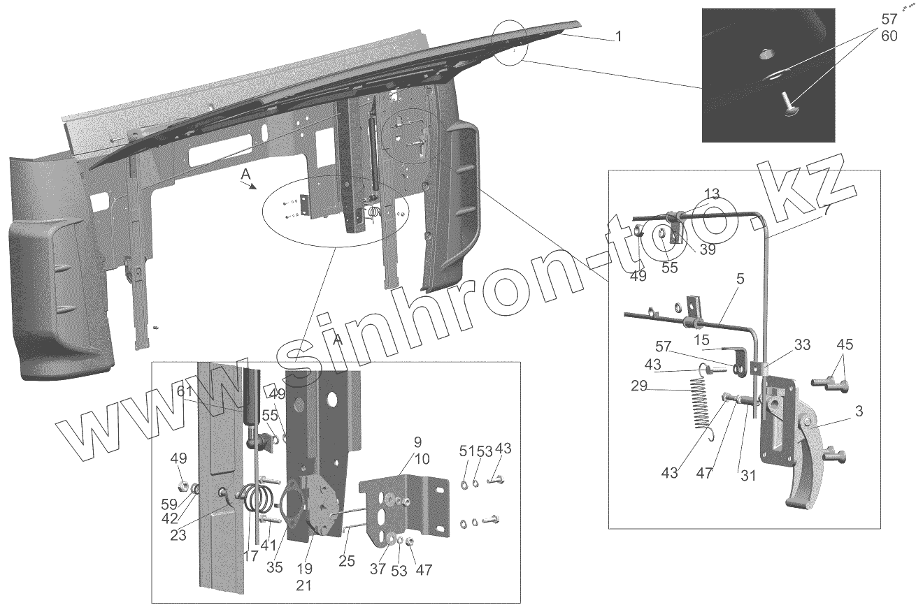 Каталог запасных частей к технике: МАЗ-6501B9. Установка облицовки передка 6431-8400018-000
