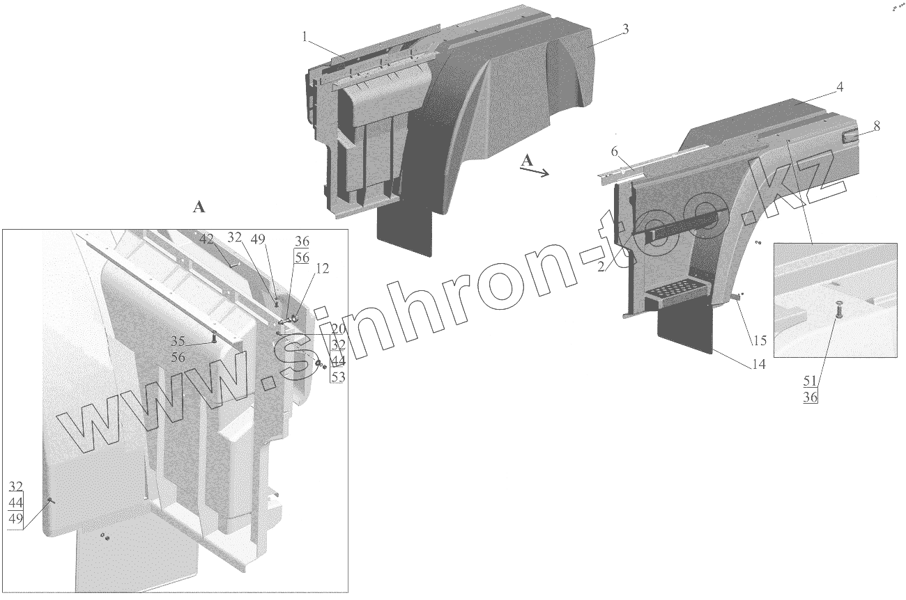 Каталог запасных частей к технике: МАЗ-6501B9. Установка оперения 6501E9-8400020-000