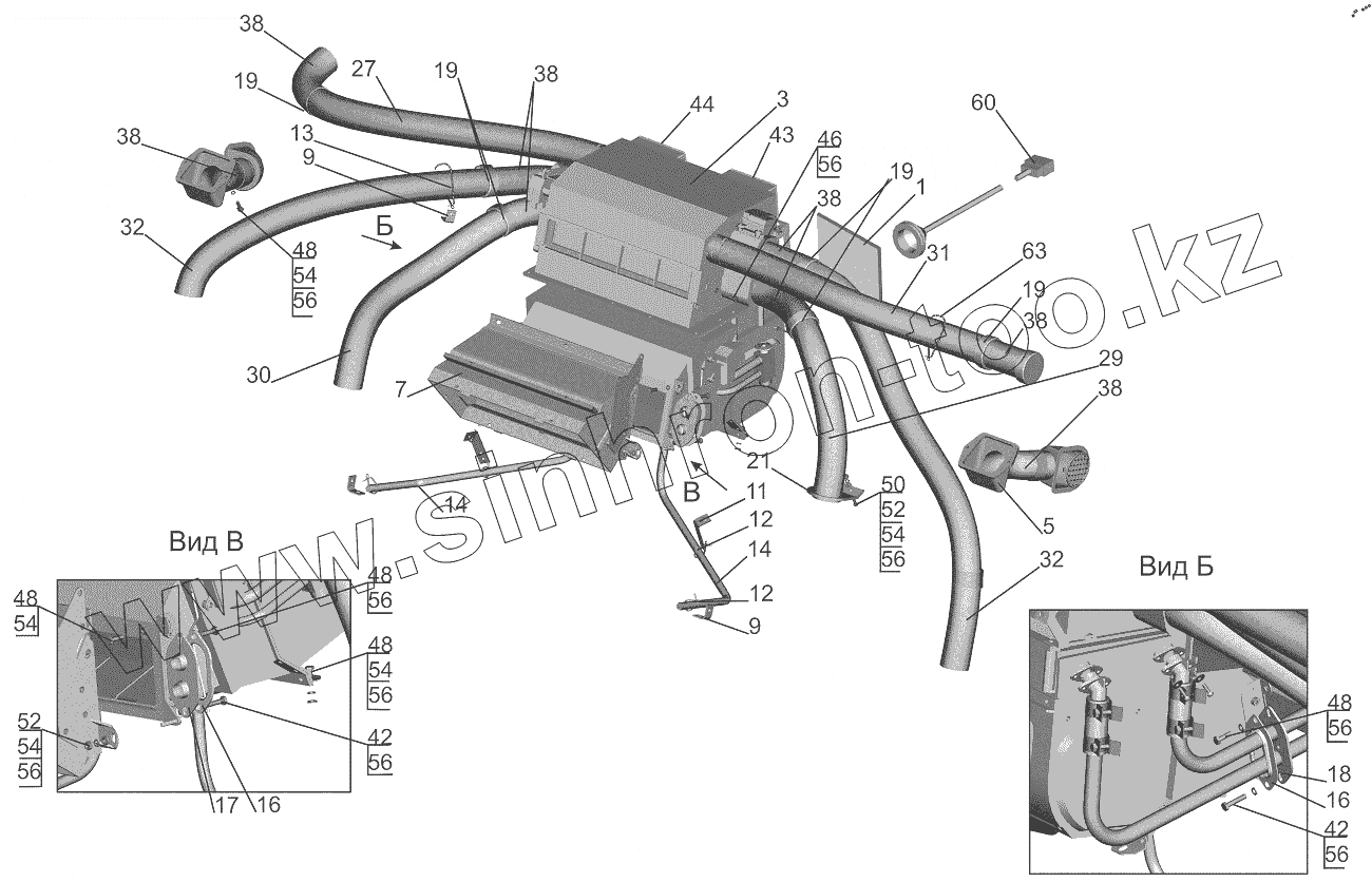 Каталог запасных частей к технике: МАЗ-6501B9. Установка отопителя 631019-8100001-010
