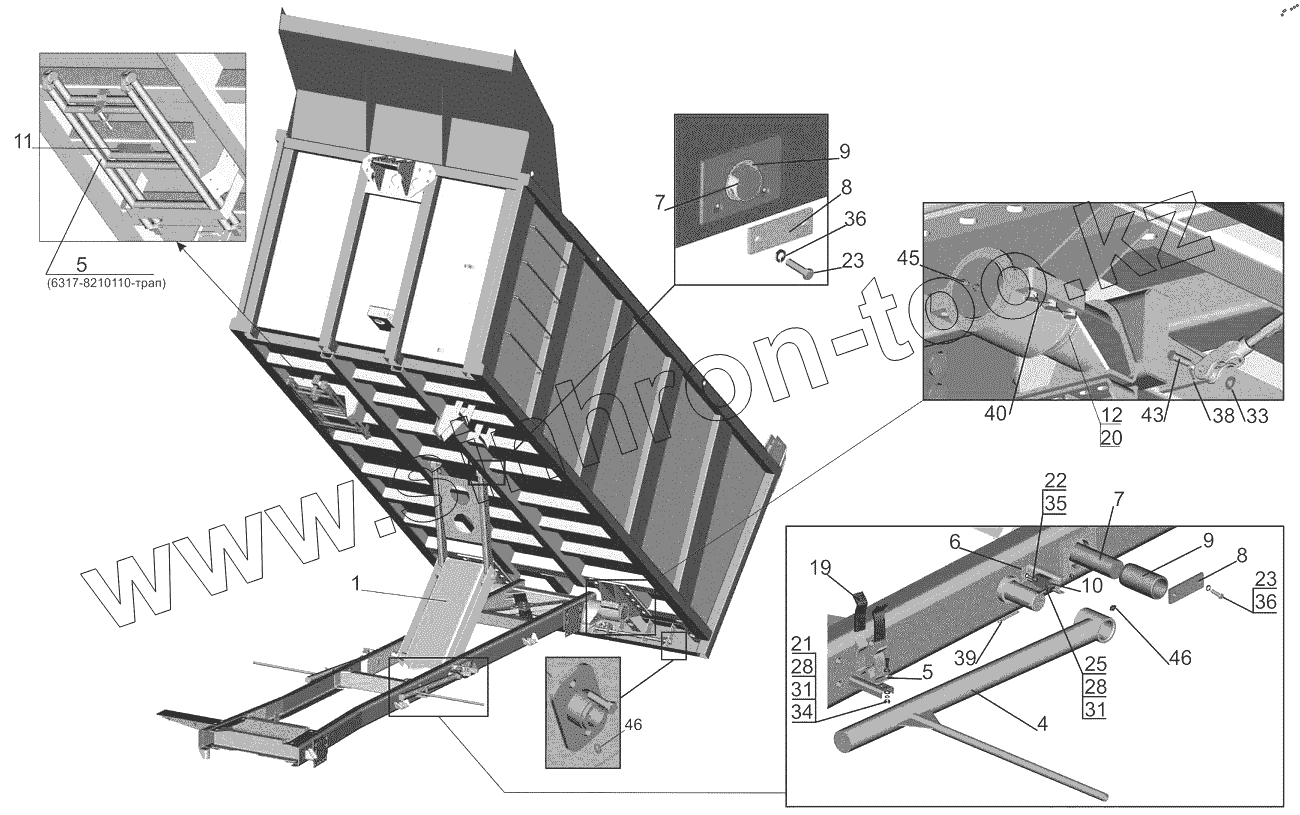 Каталог запасных частей к технике: МАЗ-6501B9. Установка платформы