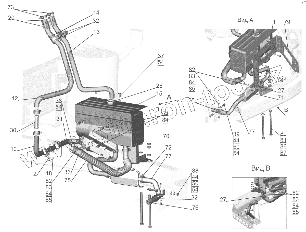 Каталог запасных частей к технике: МАЗ-6501B9. Установка подогревателя 555035-1015001-010