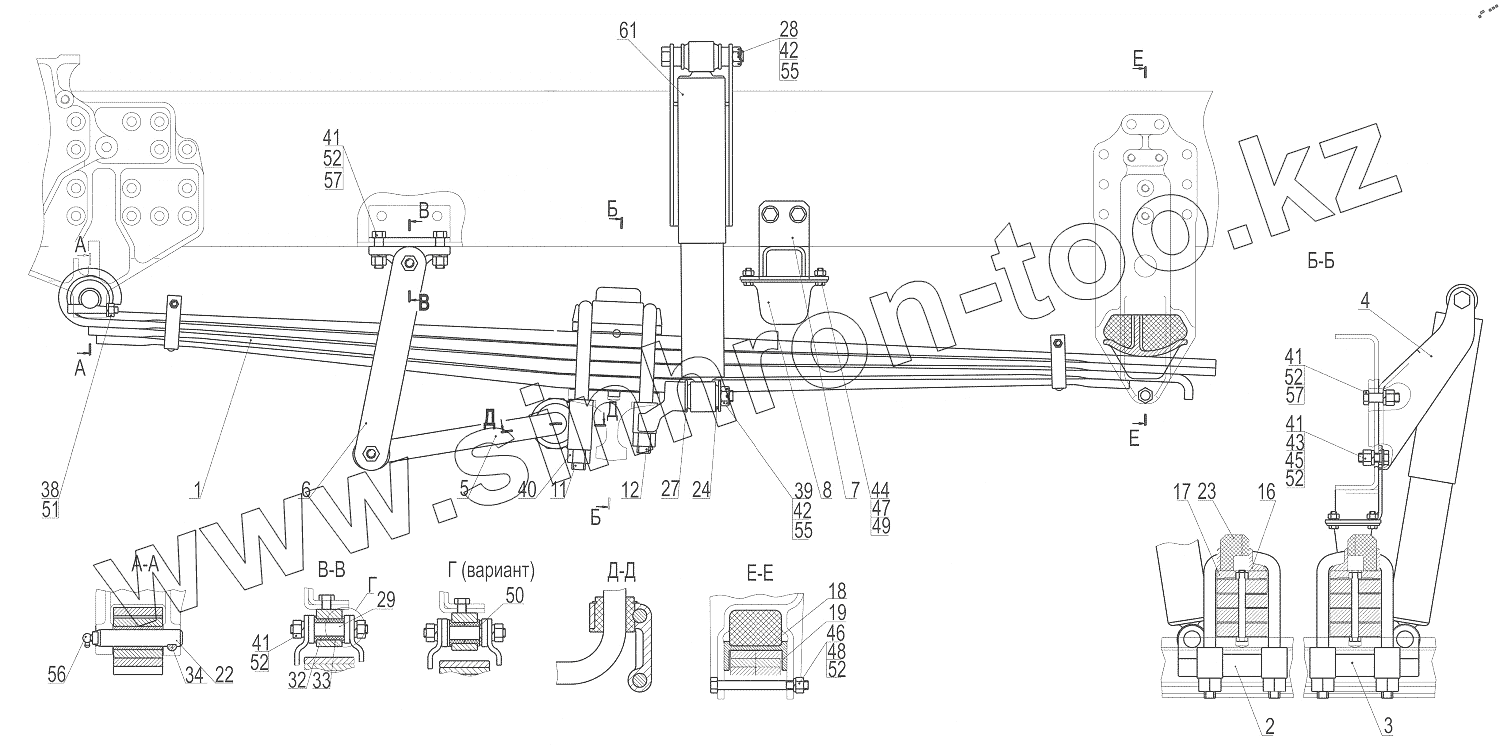Каталог запасных частей к технике: МАЗ-6501B9. Установка подвески передней 6312-2900001-031