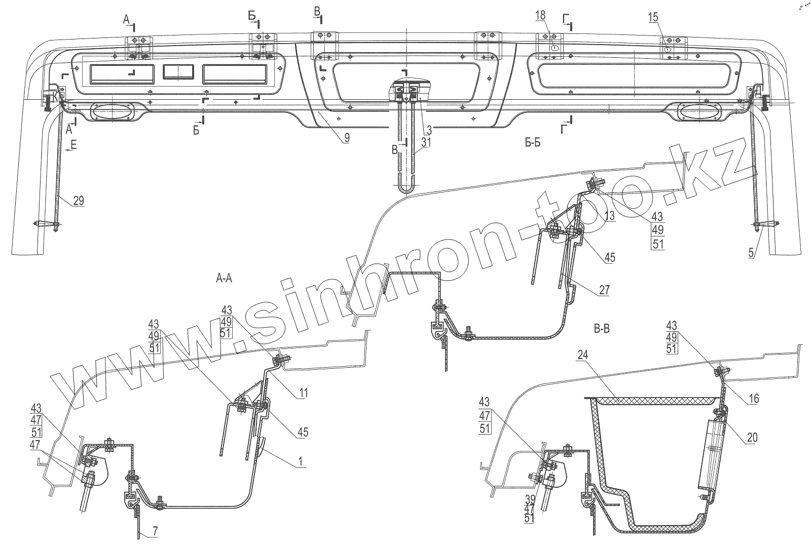 Каталог запасных частей к технике: МАЗ-6501B9. Установка полки, штор 5440-8200034