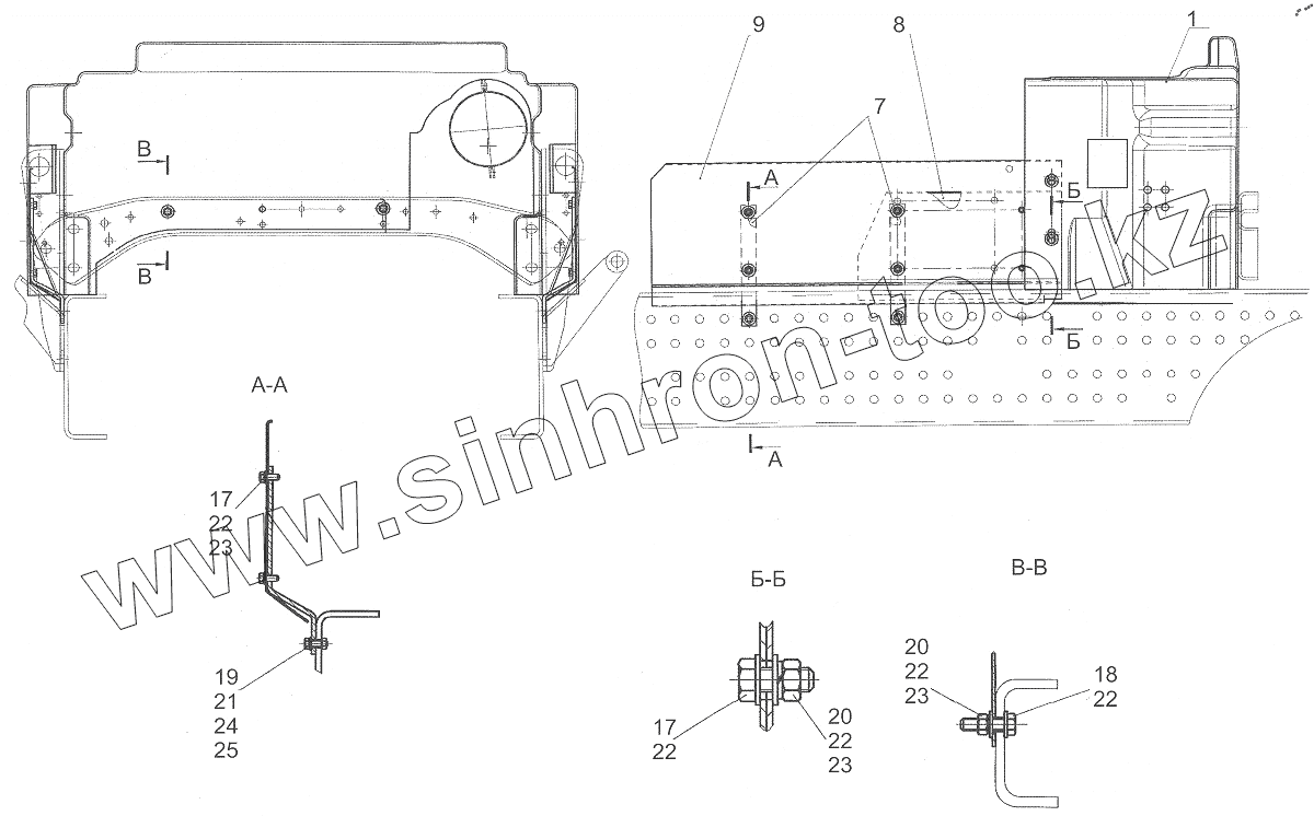 Каталог запасных частей к технике: МАЗ-6501B9. Установка шумоизоляционных экранов 5340B9-1061003-001