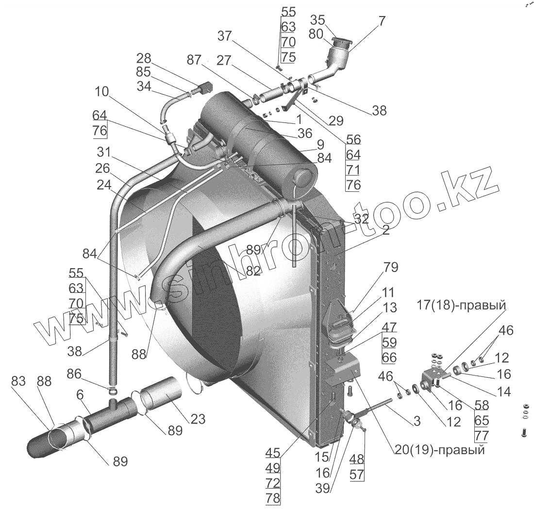 Каталог запасных частей к технике: МАЗ-6501B9. Установка системы охлаждения 5440B9-1300005-001