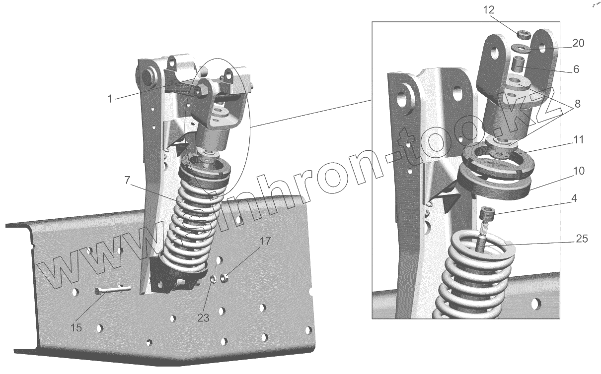 Каталог запасных частей к технике: МАЗ-6501B9. Заднее подрессоривание 6430-5001800-011