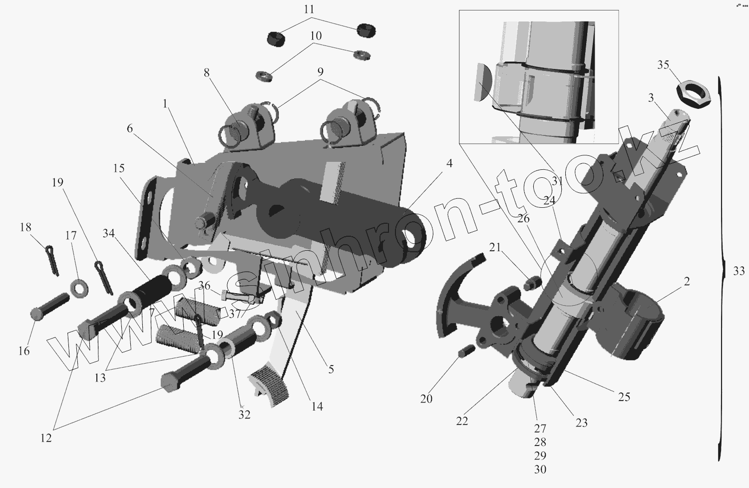 Каталог запасных частей к технике: МАЗ-651669-320 (340). Кронштейн с колонкой 5440-3403008