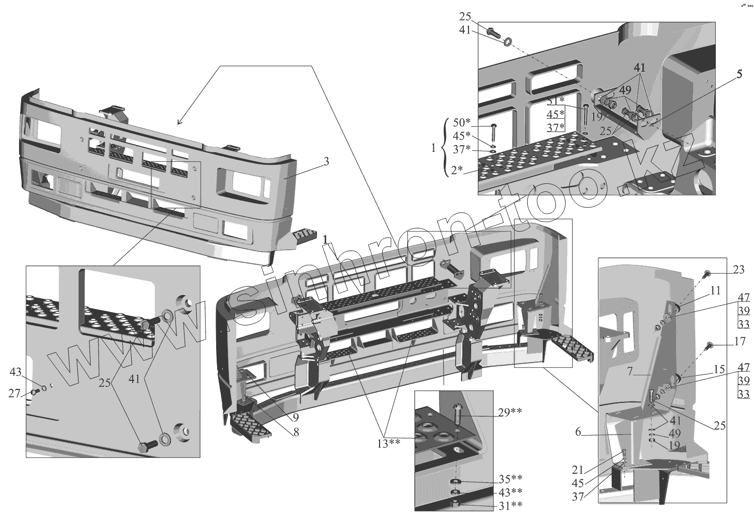 Каталог запасных частей к технике: МАЗ-651669-320 (340). Установка бампера 651608-2803006-011