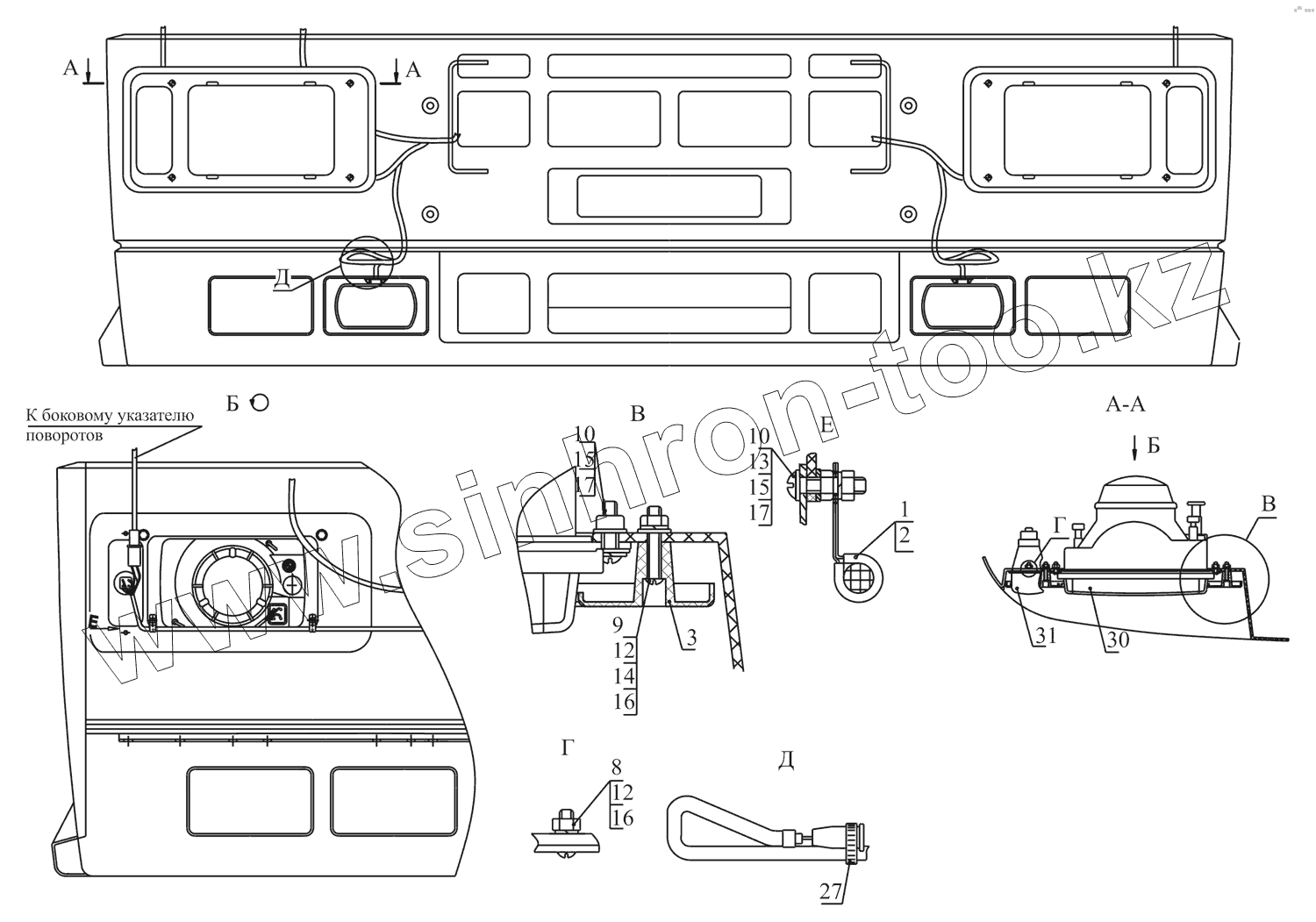 Каталог запасных частей к технике: МАЗ-651669-320 (340). Установка фар 544008-3700006