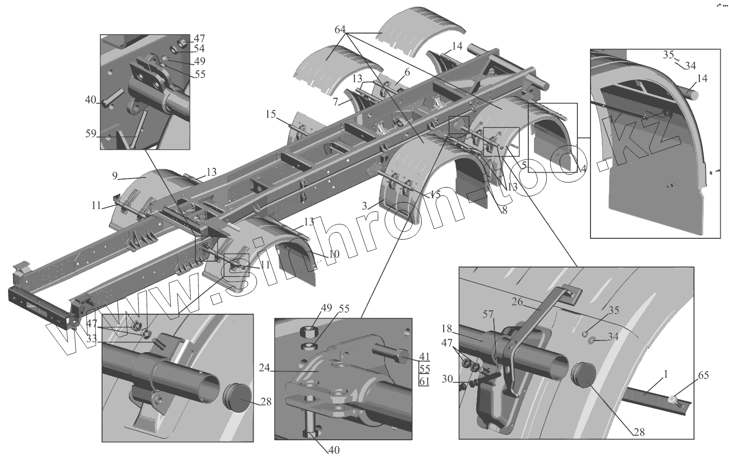 Каталог запасных частей к технике: МАЗ-651669-320 (340). Установка крыльев 651608-8500048