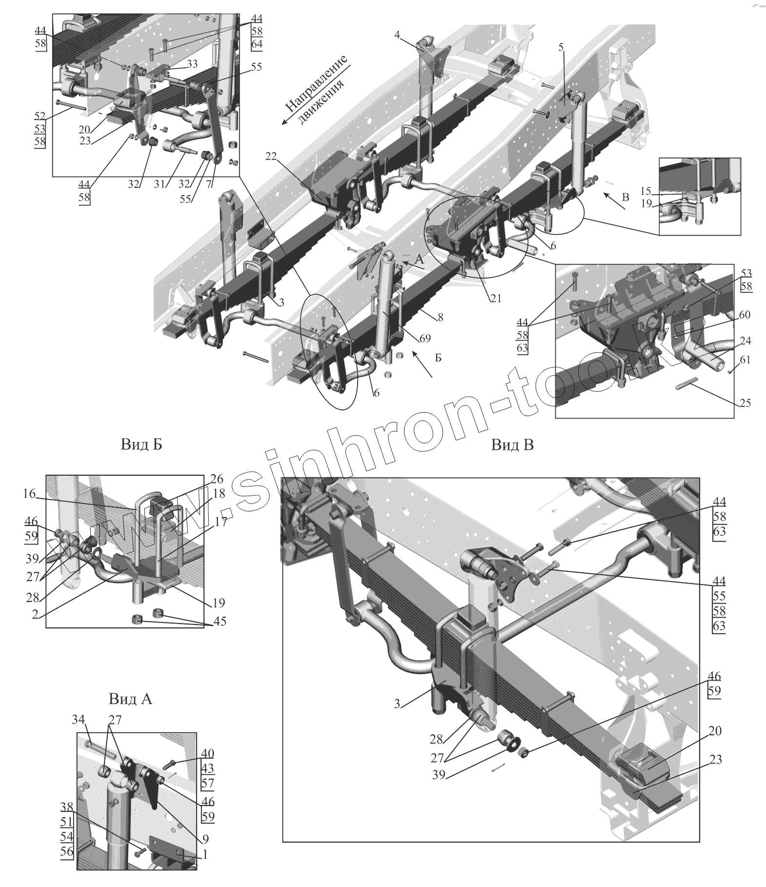 Каталог запасных частей к технике: МАЗ-651669-320 (340). Установка подвески передней 651608-2900001