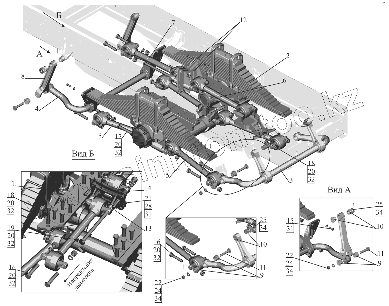 Каталог запасных частей к технике: МАЗ-651669-320 (340). Установка подвески задней 651608-2900002