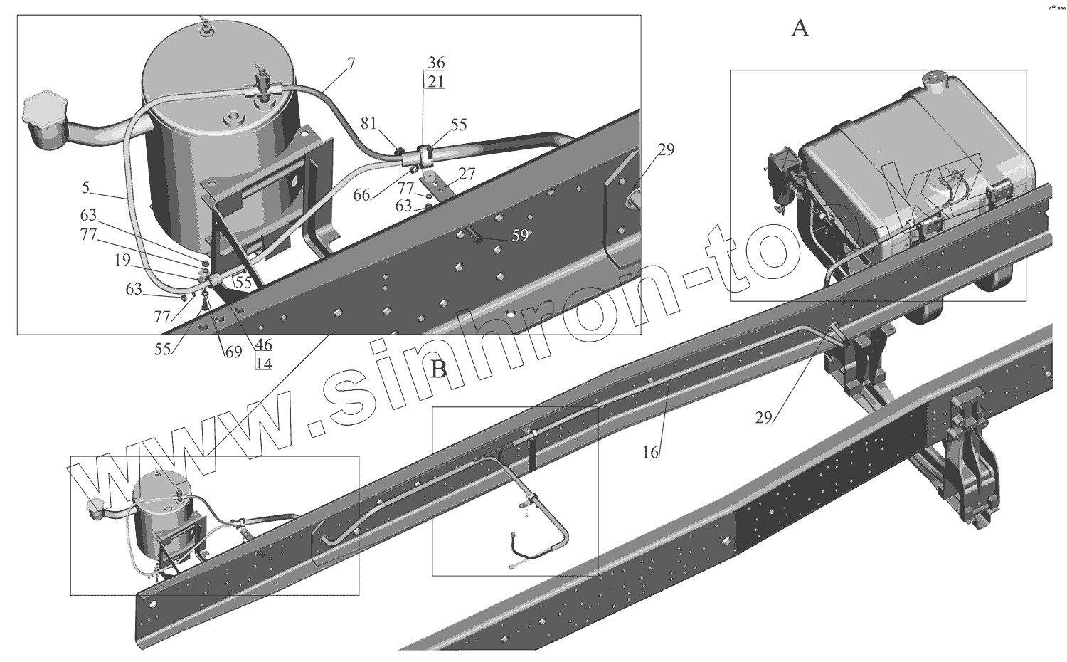 Каталог запасных частей к технике: МАЗ-651669-320 (340). Установка топливопроводов 651669-1104002