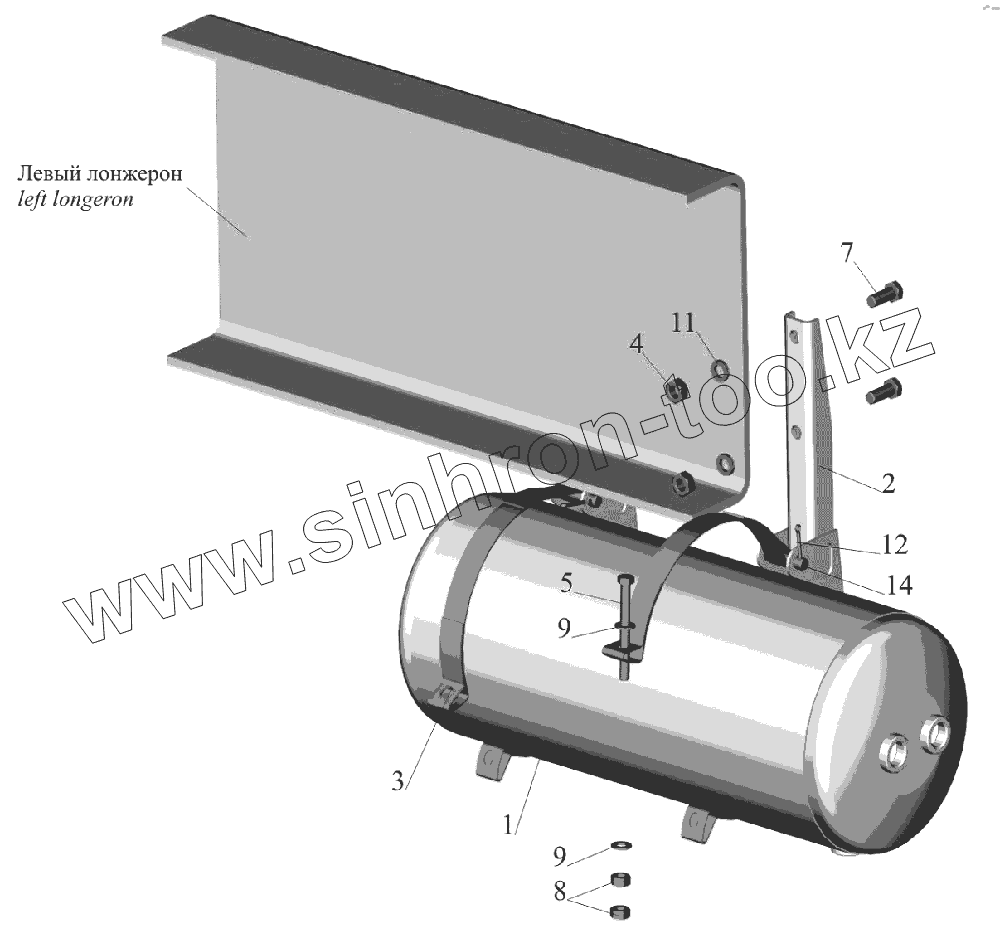 Каталог запасных частей к технике: МАЗ-6516V8-520 (6516V8-540). Крепление ресивера 650108-3513006