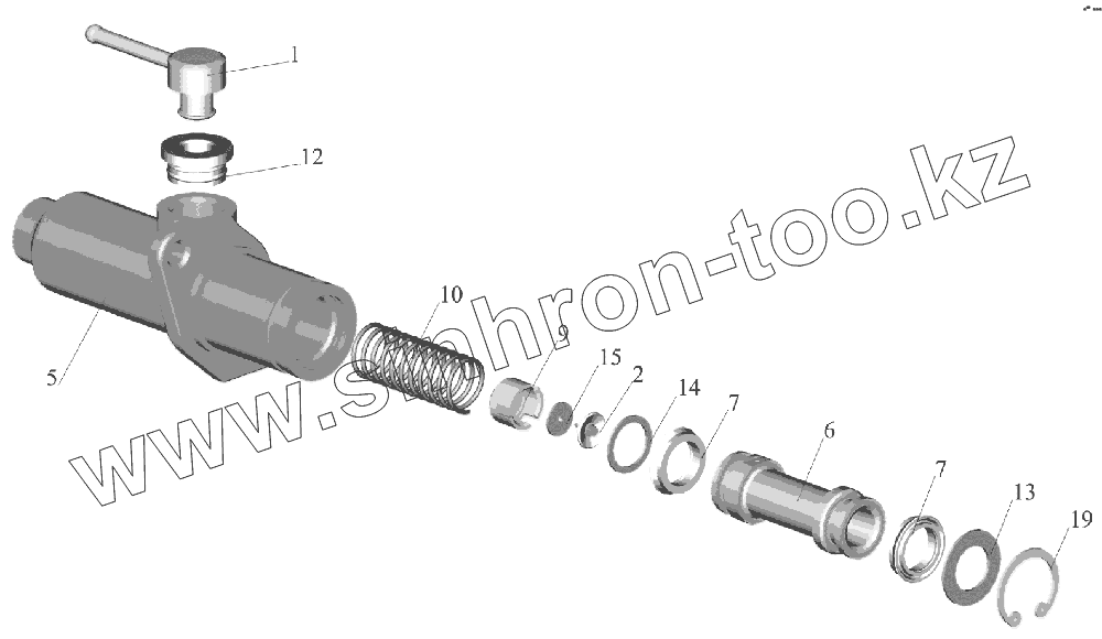 Каталог запасных частей к технике: МАЗ-6516V8-520 (6516V8-540). Цилиндр подпедальный 6430-1602510