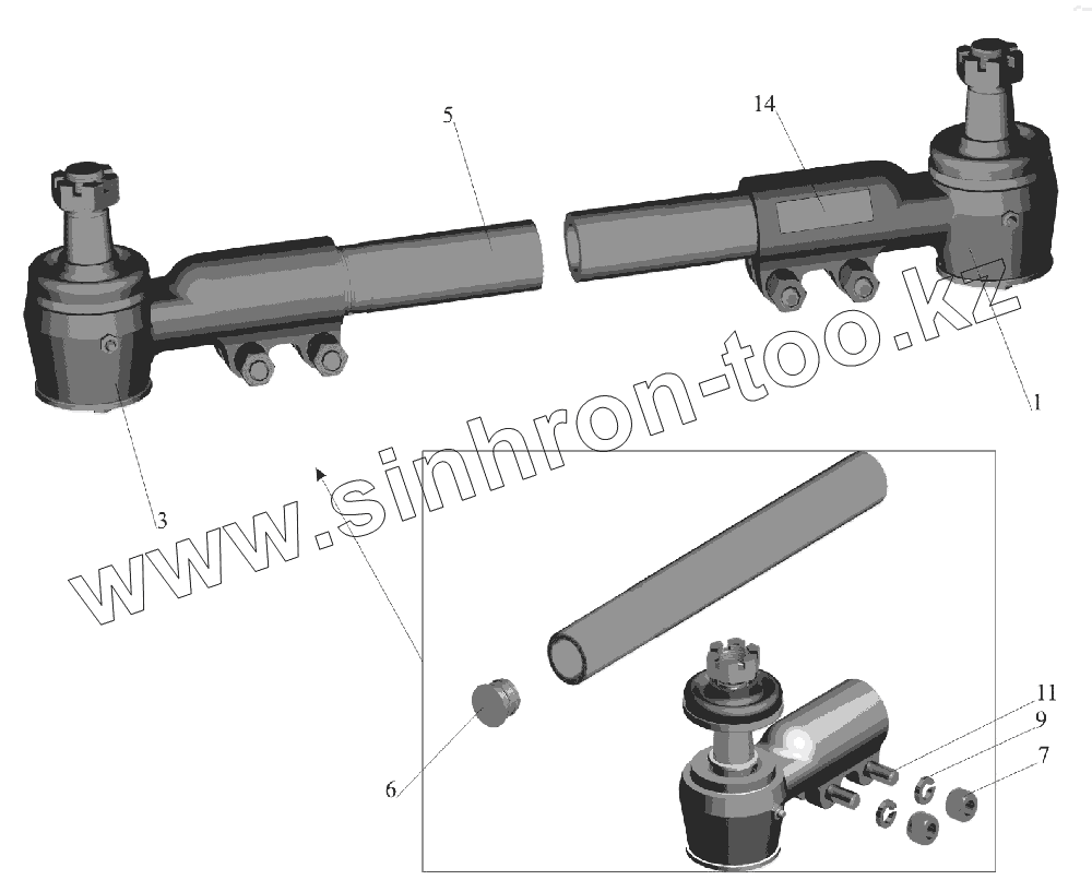 Каталог запасных частей к технике: МАЗ-6516V8-520 (6516V8-540). Тяга поперечная 64221-3003052