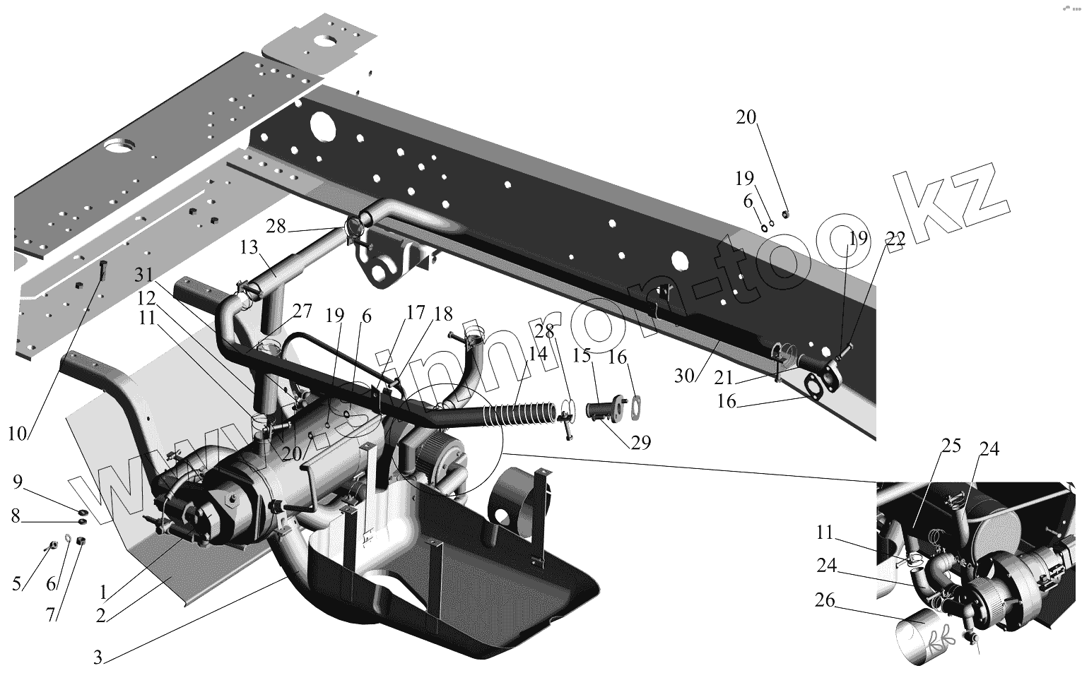 Каталог запасных частей к технике: МАЗ-651705. Крепление предпускового подогревателя 642290-1015001