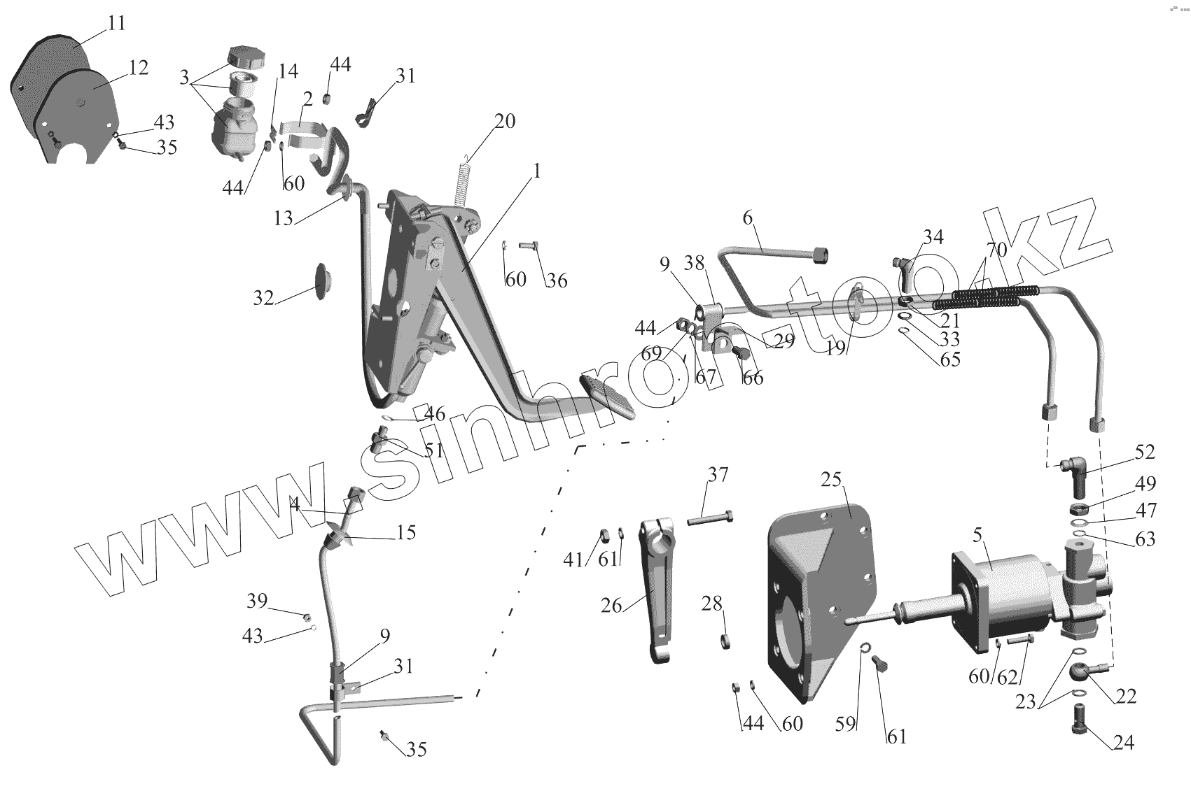 Каталог запасных частей к технике: МАЗ-651705. Механизм управления сцеплением 64229-1600005-033