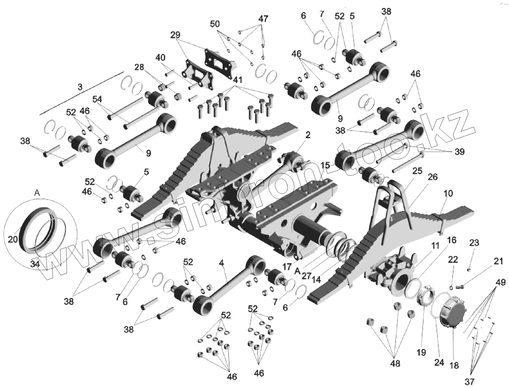 Каталог запасных частей к технике: МАЗ-651705. Подвеска балансирная 651705-2900002