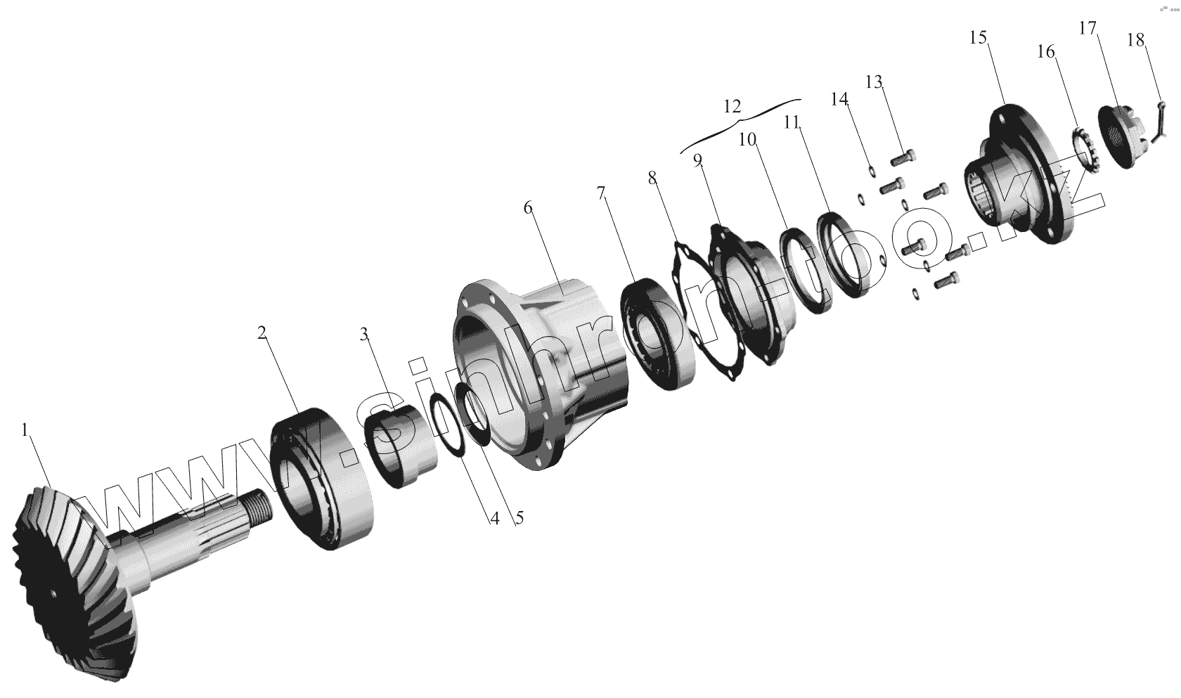 Каталог запасных частей к технике: МАЗ-651705. Редуктор заднего моста. Шестерня ведущая