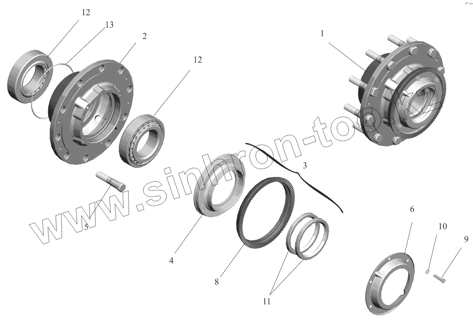 Каталог запасных частей к технике: МАЗ-651705. Ступица заднего и среднего мостов