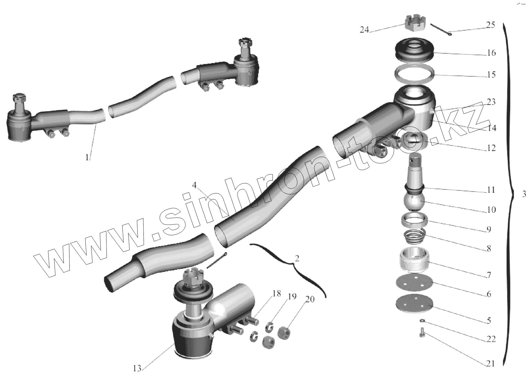 Каталог запасных частей к технике: МАЗ-651705. Тяга поперечная рулевая 5434-3003052
