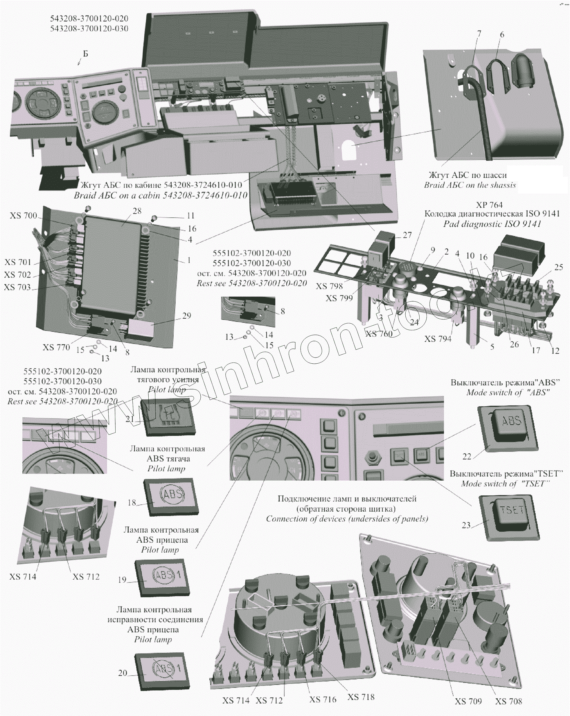 Каталог запасных частей к технике: МАЗ-651705. Установка АБС по кабине