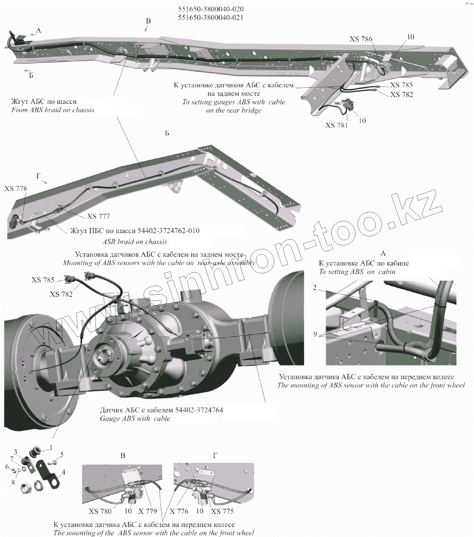 Каталог запасных частей к технике: МАЗ-651705. Установка электрооборудования АБС